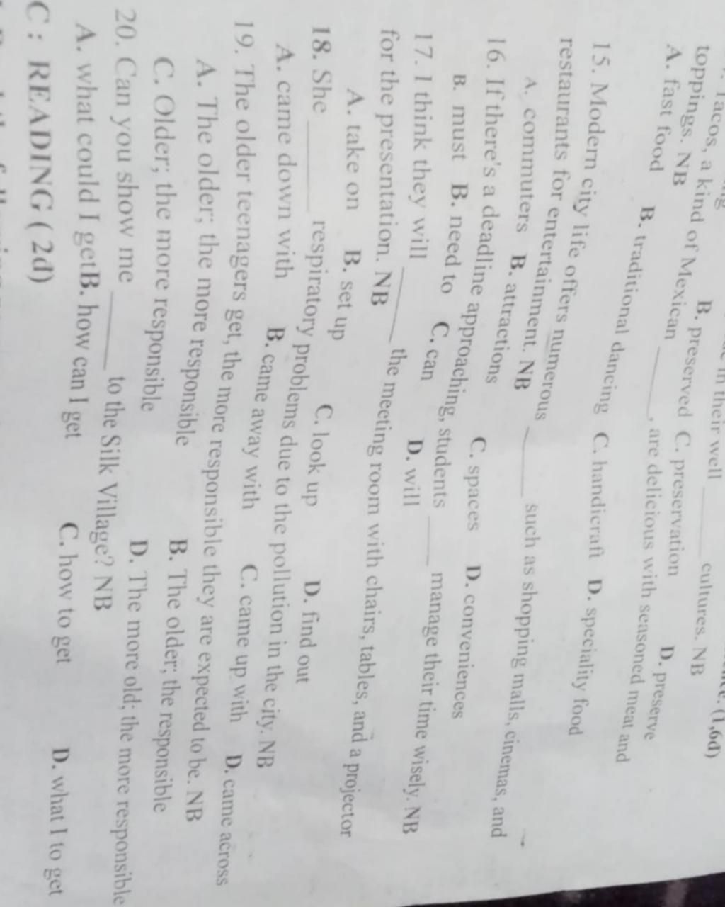 15. “Conveniences” nghĩa là những tiện ích, phù hợp với ngữ cảnh đề cập đến những tiện ích trong cuộc sống thành thị.