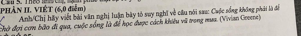 Tóm lại, câu nói của Vivian Greene đã mang đến cho chúng ta một thông điệp vô cùng ý nghĩa. Đó là cuộc sống không phải là một cuộc đua để đạt được đích đến, mà là một hành trình khám phá bản thân và tận hưởng cuộc sống. Và khi những cơn bão cuộc đời ập đến, hãy học cách đối mặt với chúng bằng một thái độ lạc quan, bằng niềm tin vào bản thân và bằng những bước nhảy uyển chuyển.