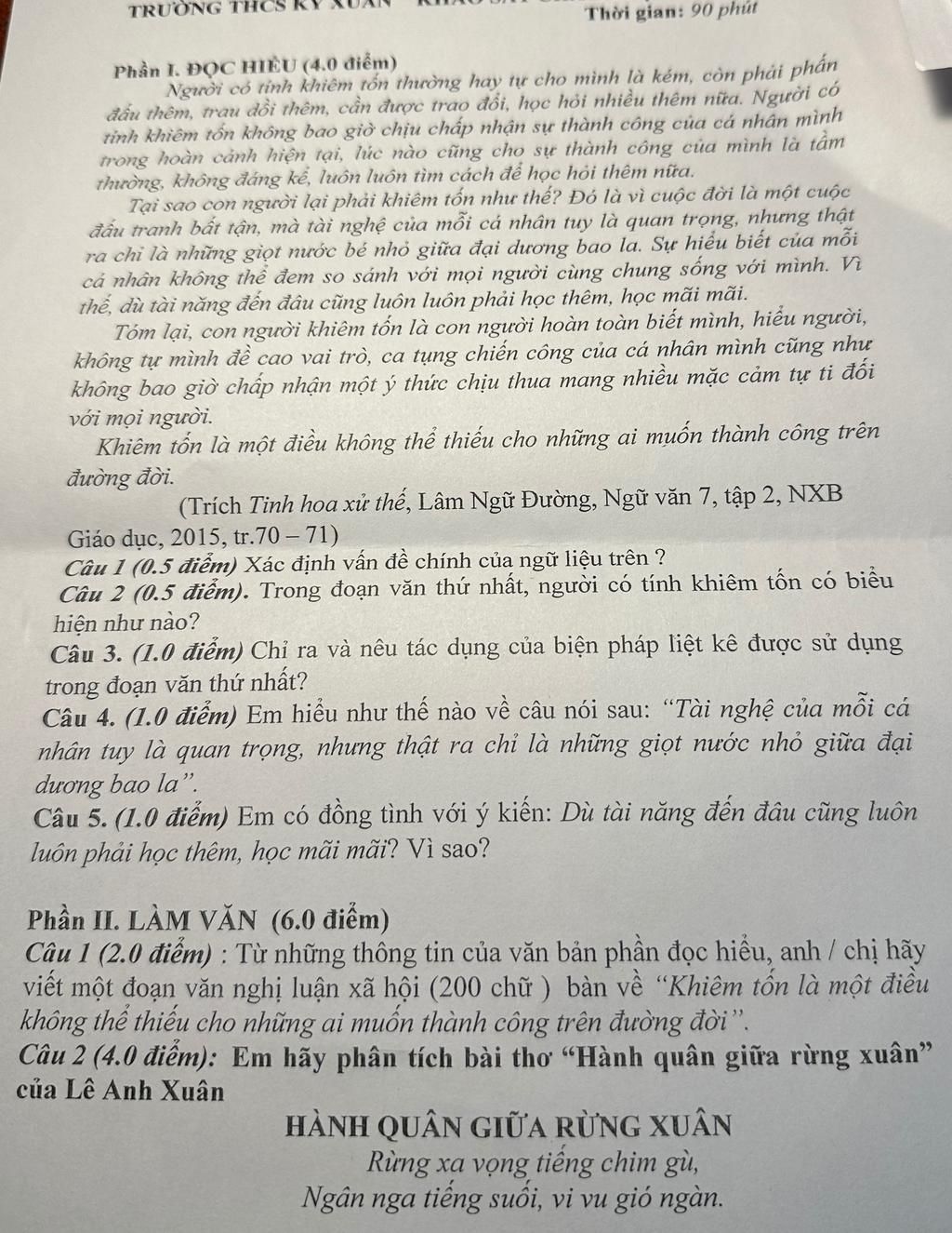 Câu 1. (2.0 điểm). Phân tích nhân vật Người cha trong văn bản bằng một đoạn
