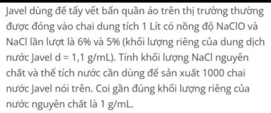 NaCl nguyên chất là cả NaCl Có trong NaClO nữa hả anh