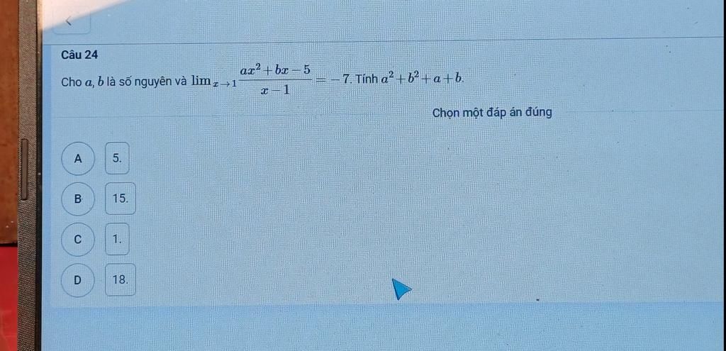 Vì $\lim_{x\to1}\dfrac{ax^2+bx-5}{x-1}=-7$