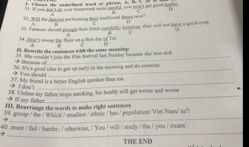 xem lại 32 33 em 32 chủ ngữ the dancers --> số nhiều 33 vị trí đó không dùng but được vì but đứng trước k có ; nha