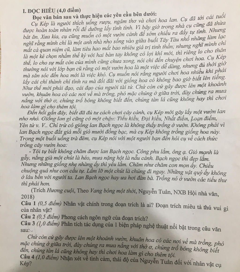 Câu 3: Phân tích tác dụng của 1 biện pháp nghệ thuật nổi bật trong câu văn sau: "Chứ còn cứ gây được lên một khoảnh vườn, khuân hoa có các nơi về mà trồng, phó mặc chúng ở giữa trời, đấy chúng ra mưa nắng dãi dầu, cũng chẳng biết chúng có sống không, cũng tàn là cũng không hay thì chơi hoa làm gì cho thêm tội."
