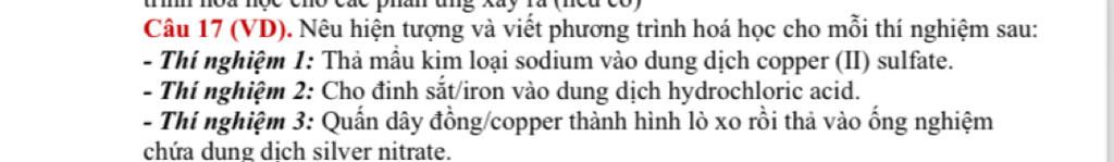 Hiện tượng: mẩu natri tan dần, có khí không màu không mùi thoát ra, xuất hiện kết tủa xanh lam, dung dịch nhạt màu dần