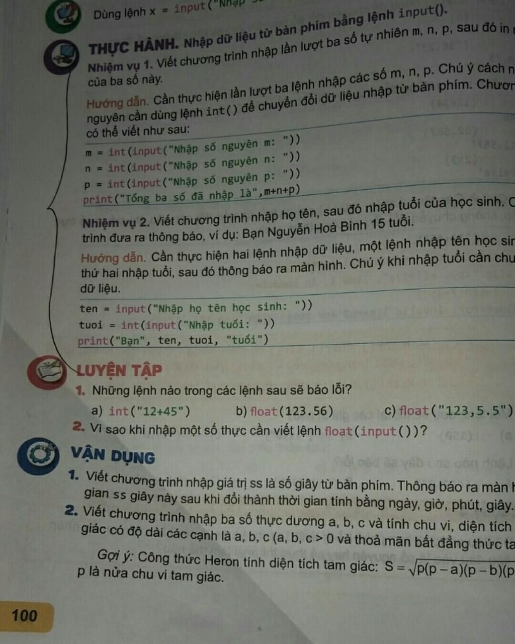 THỰC HÀNH. Nhập dữ liệu từ bàn phím bằng lệnh input().