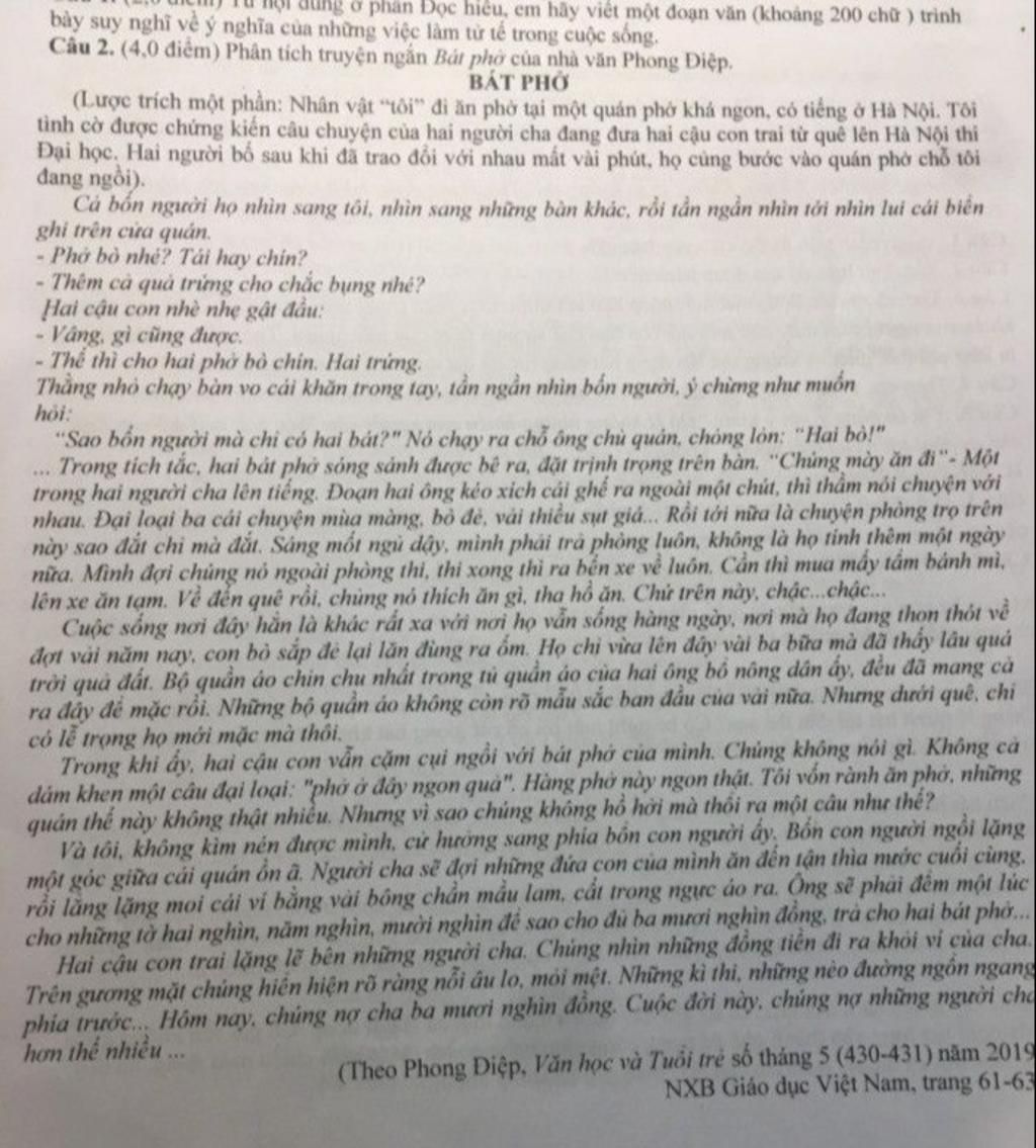 viết bài văn nghị luận phân tích một tác phẩm văn truyện ngắn “ Bát phở” của Phong Điệp