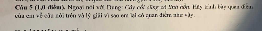 $-$Cây cối có linh hồn không phải theo nghĩa đen, nhưng tôi tin rằng chúng mang trong mình một sức sống đặc biệt và một sự kết nối sâu sắc với thiên nhiên. Cây không chỉ là những sinh vật đứng yên mà còn là những "thế giới nhỏ" với hệ sinh thái riêng, có thể cảm nhận, phản ứng và thậm chí giao tiếp với các sinh vật xung quanh. Khi ta chăm sóc một cây, ta có thể thấy nó lớn lên, đơm hoa, kết quả, và điều đó như thể cây đang "tỏ bày" cảm xúc của mình qua từng nhành lá, từng cánh hoa.