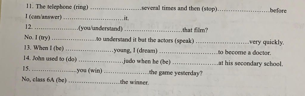 `15.` Did you win the game yesterday? No, class 6A was the winner.