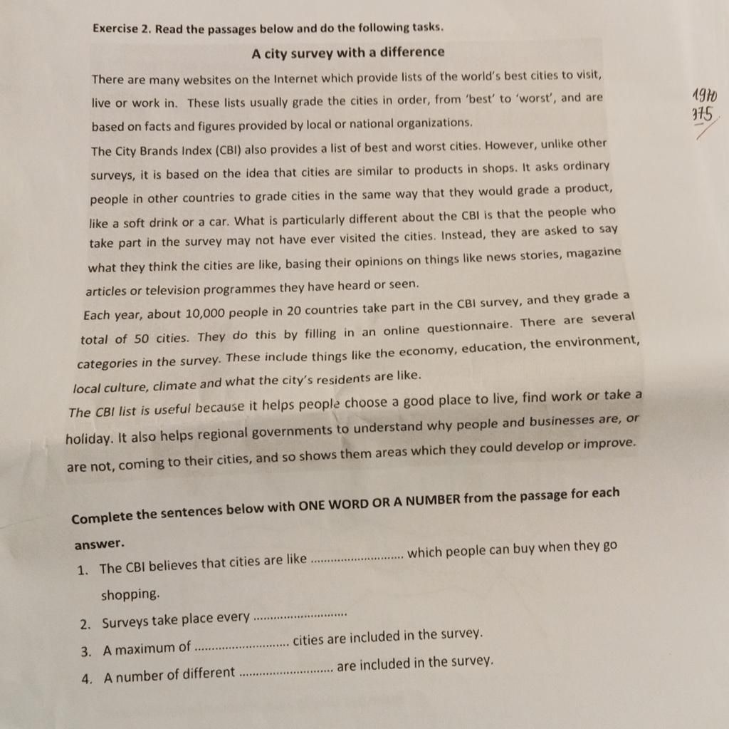 `-` Dẫn chứng: Each year, about `10,000` people in `20` countries take part in the CBI survey, and they grade a total of 50 cities.