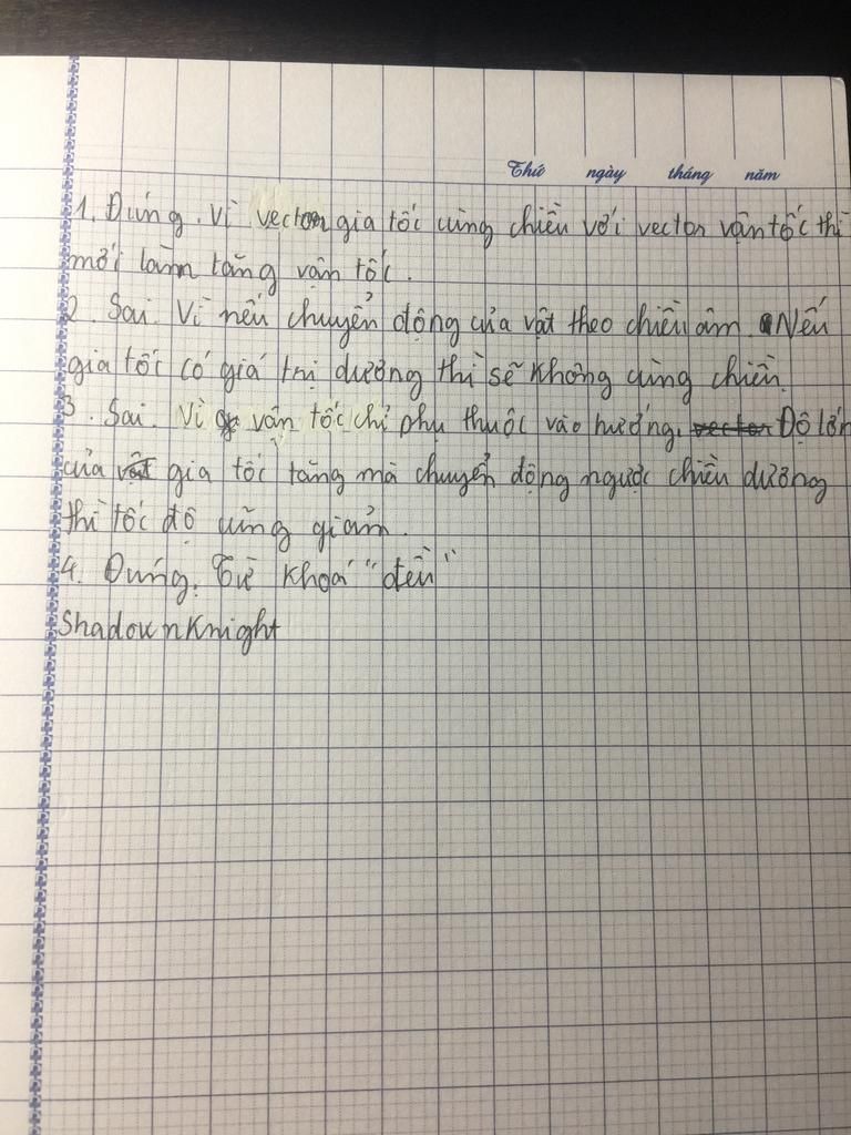 Ý là vận tốc tăng, gia tốc tăng cx có thể mà. Kiểu a.v>0 ý. Theo tớ là v