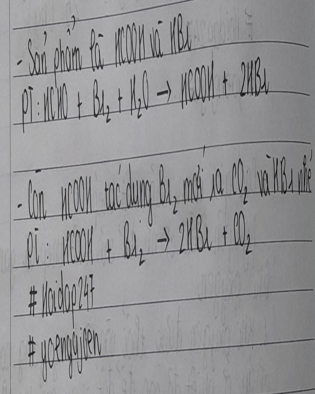 HCHO td nước Br2 ra CO2 và HBr hay HCOOH và HBr vậy