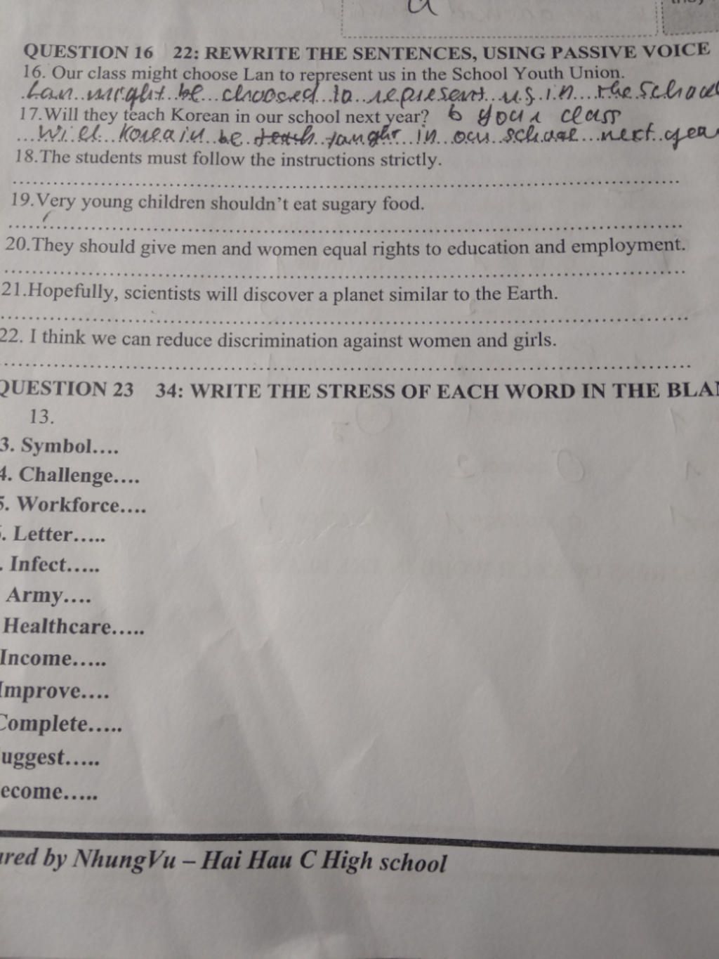 16. Lan might be chosen (by our class) to represent us in the School Youth Union.