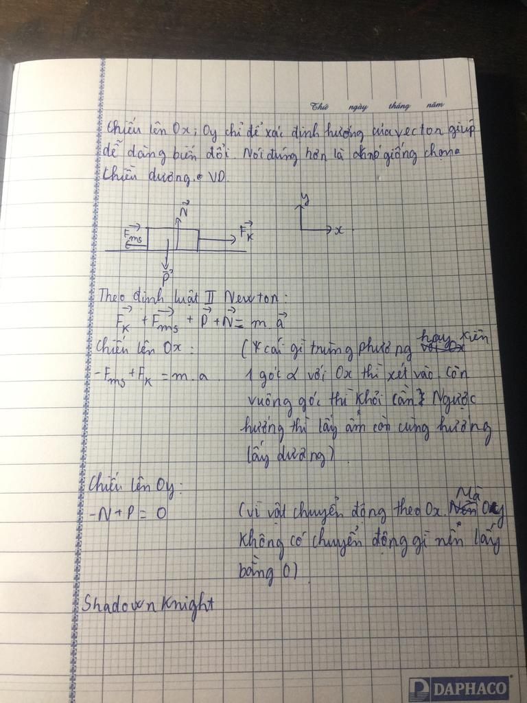 (định luật newton) ai chỉ mình cách chiếu lên trục ox và oy với.khi nào cần chiếu lên trục ox,khi nào cần chiếu lên oy hoặc chiếu cả 2.lấy ví dụ