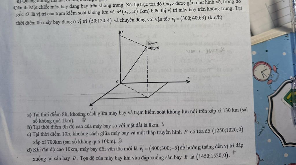 thời điểm 8h máy bay đang ở vị trí (50;120;4) và chuyển động với vận tố ...