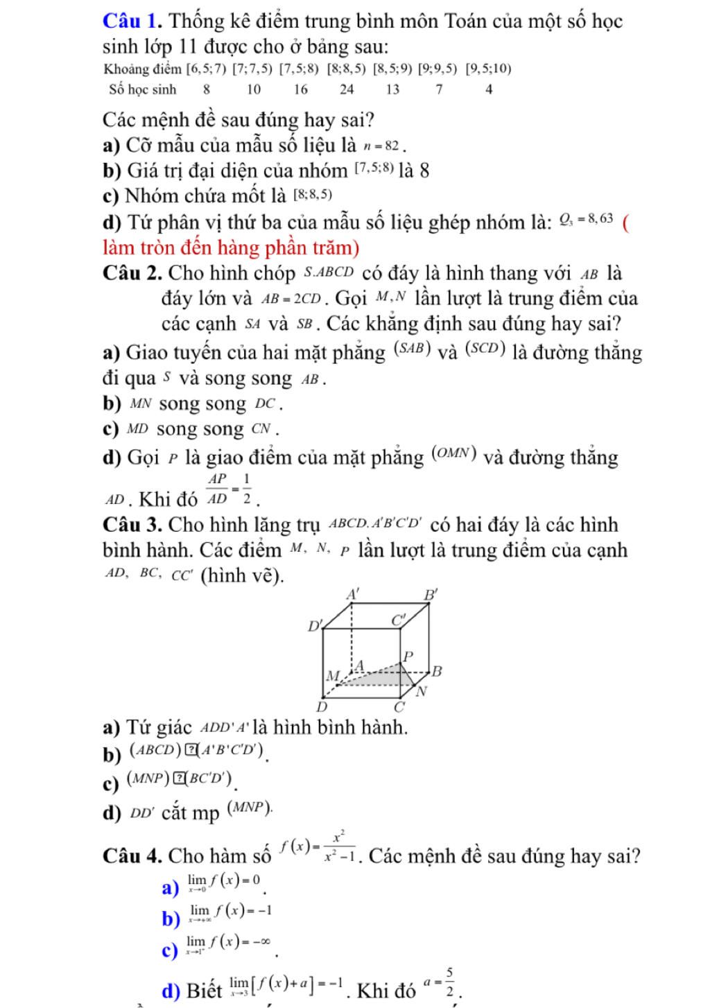 Câu 1. Thống kê điểm trung bình môn Toán của một số học