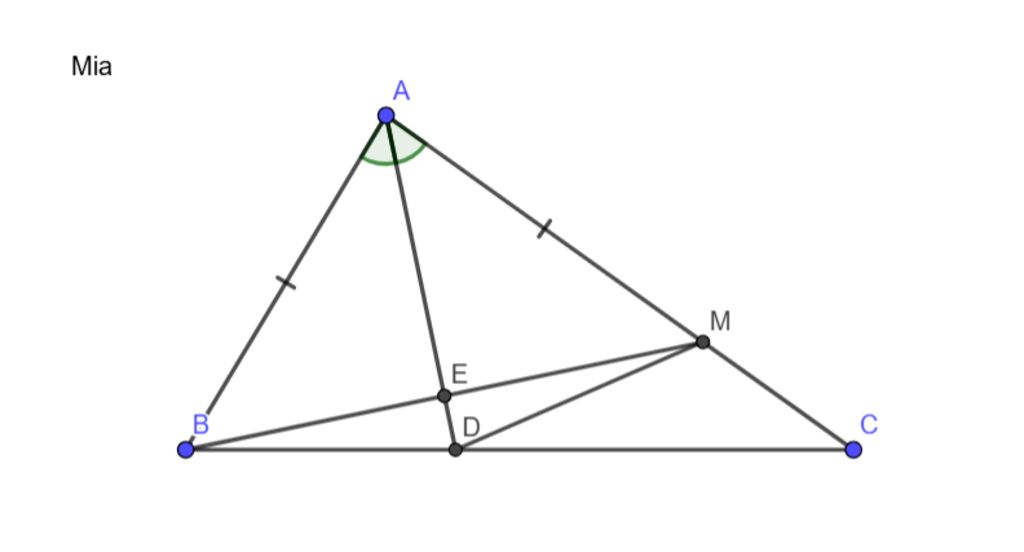 `=>AD` là đường trung trực của đoạn thẳng `BM` ( Dùng định lí Điểm nằm trên đường trung trực của một đoạn thẳng thì cách đều hai mút của đoạn thẳng đó)