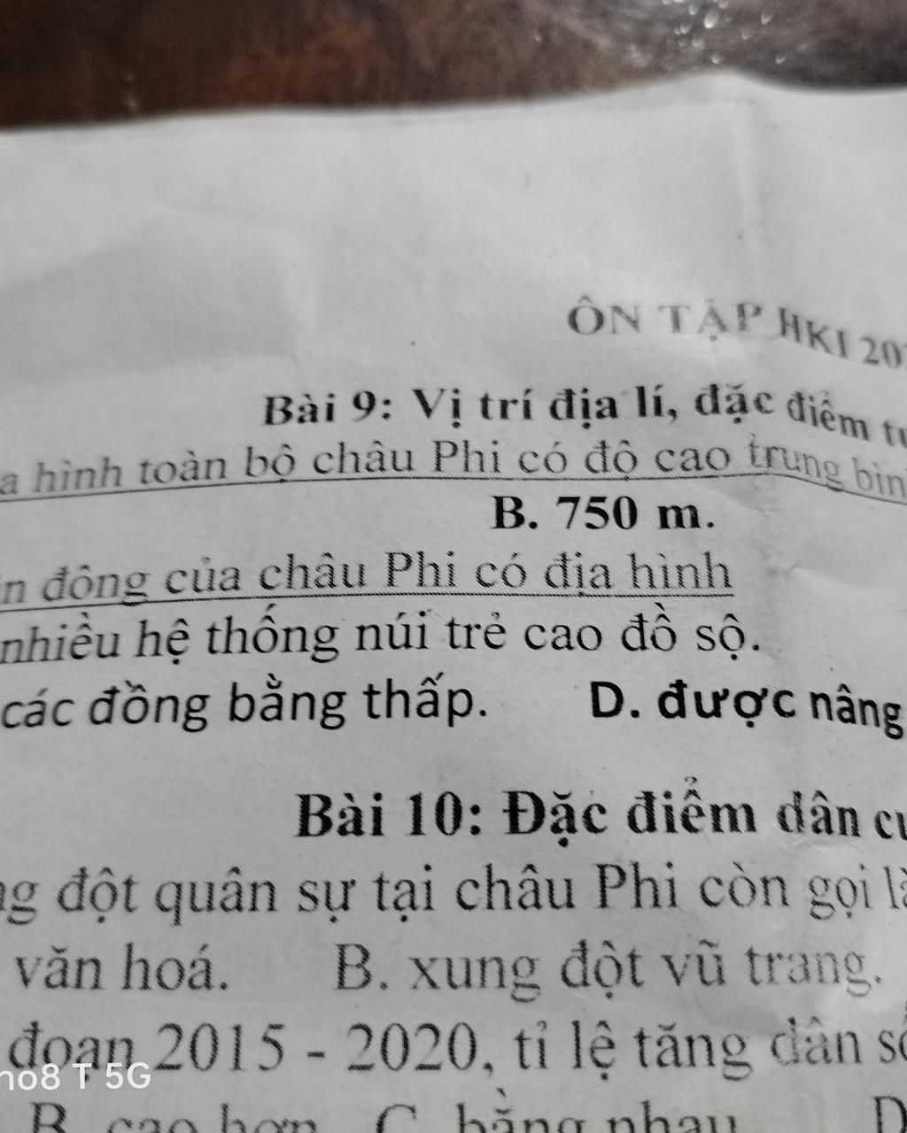 `->` Địa hình toàn bộ châu phi có độ cao trung bình là `750m.`