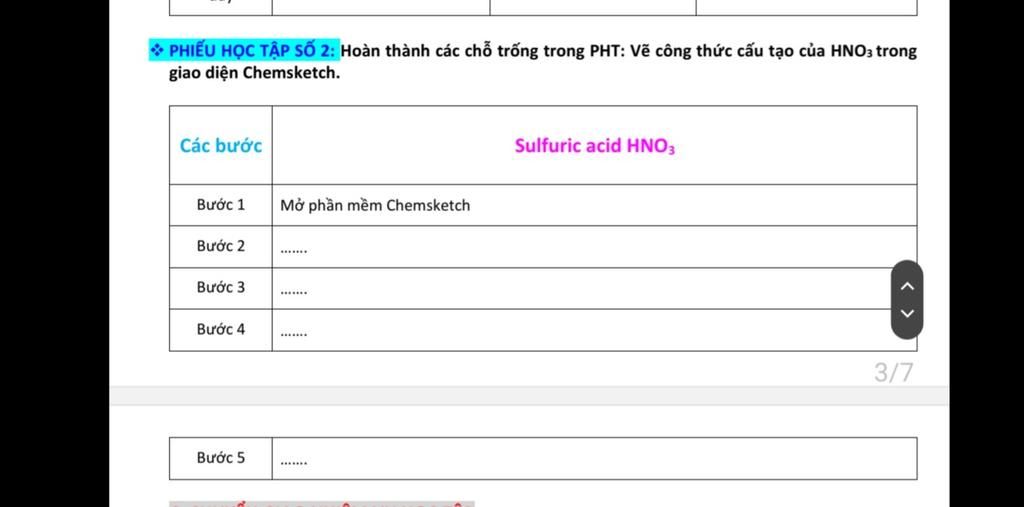 * PHIẾU HỌC TẬP SỐ 2: Hoàn thành các chỗ trống trong PHT: Vẽ công thức cấu tạo của HNO3 trong