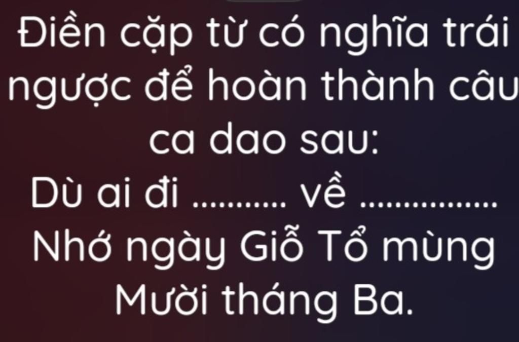trước chữ về điền chữ ngược sau chữ về điền chữ xuôi là đc hàaa