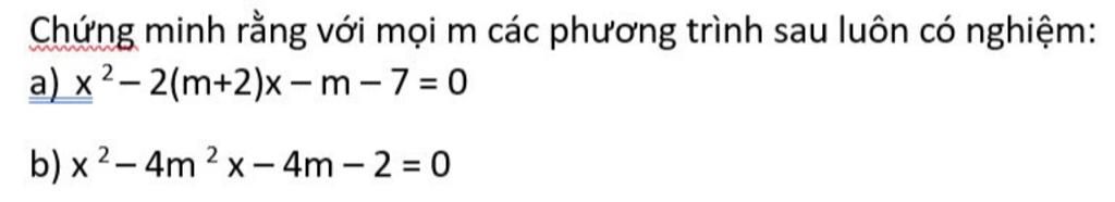 `a, Delta ' = [-(m+2)]^2 +1(m+7) = m^2 + 4m + 4 + m + 7 = m^2 +5m+11 = (m+5/2)^2 + 19/4 > 0 AA m`