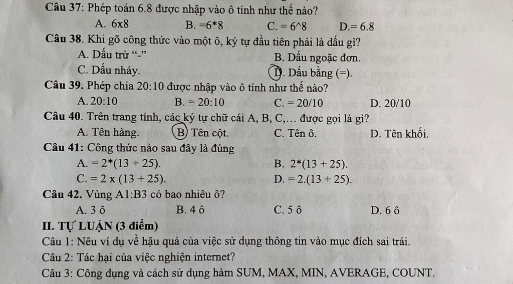 => KHI GÕ CÔNG THỨC VÀO MỘT Ô, KÝ TỰ ĐẦU TIÊN PHẢI LÀ DẤU =
