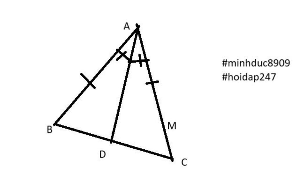 CHO TAM GIÁC ABC NHỌN (AB<AC) VẼ AD LÀ TIA PHÂN GIÁC CỦA BAC D(THUỘC) BC TRÊN CẠNH AC LẤY ĐIỂM M SAO CHO AM=AB