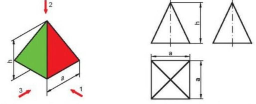 - Hình chiếu đứng và hình chiếu cạnh là hình chữ nhật.