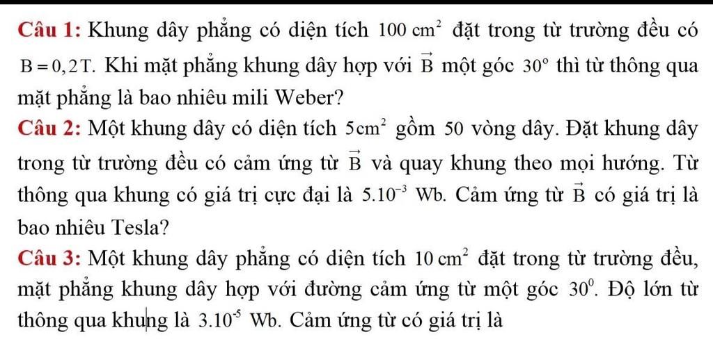 `Phi = B S sin alpha = 0,2 . 0,01 .sin 30^o = 0,001 (Wb) = 1 (mWb)`