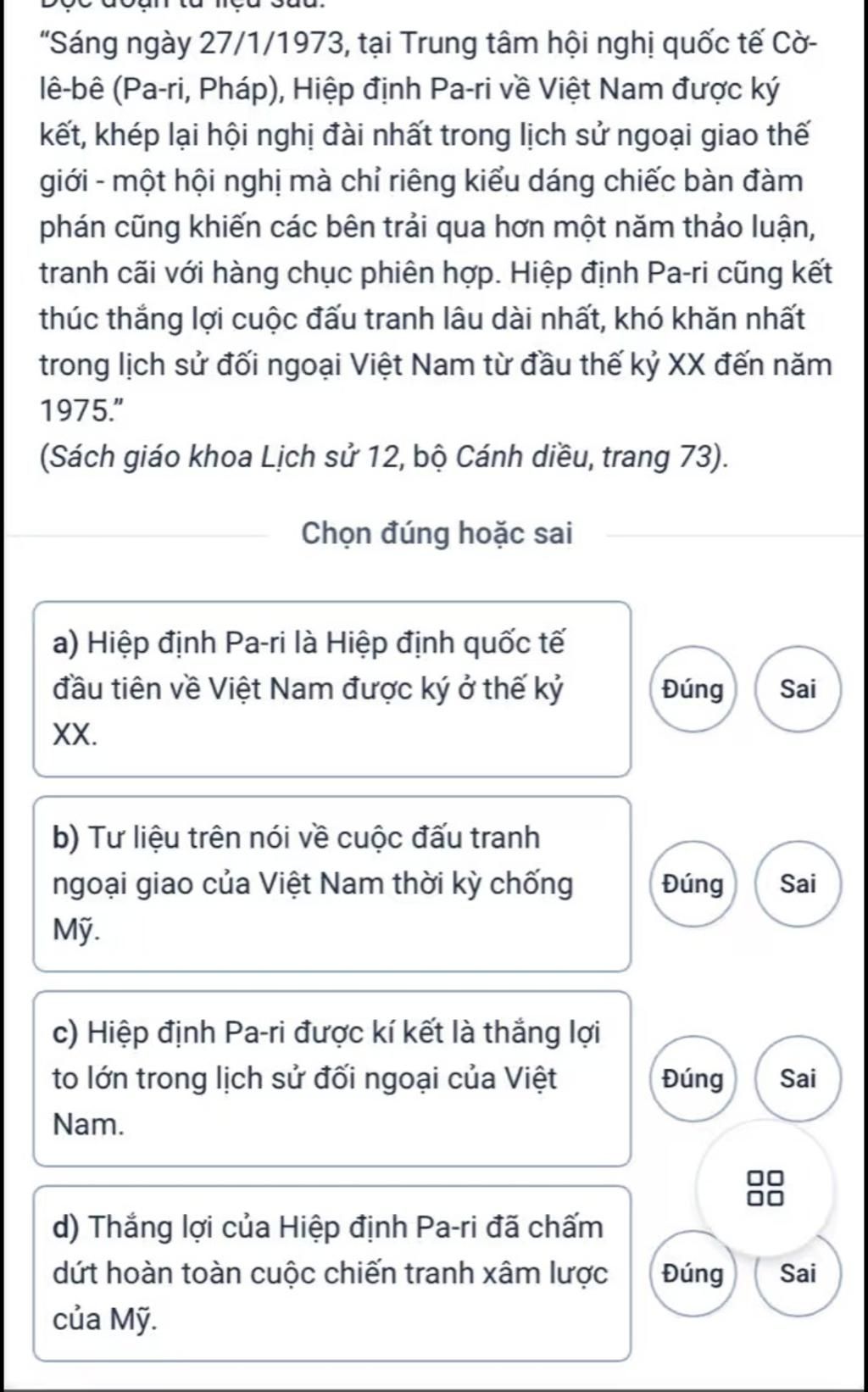 `***` Hiệp định Pa-ri là kết quả của cuộc đấu tranh ngoại giao thời chống Mỹ.