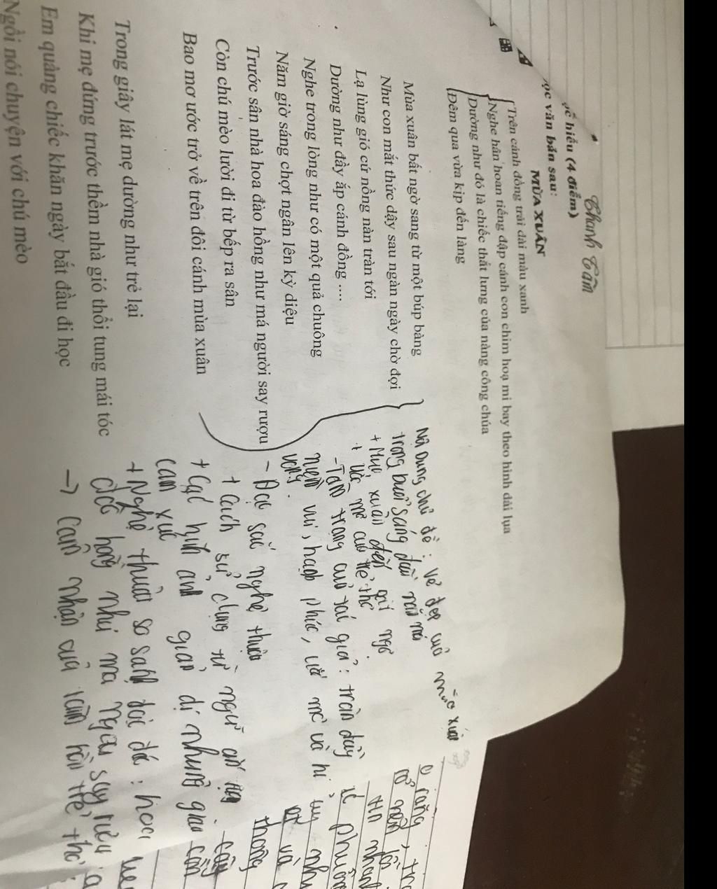 Viết đoạn văn phân tích 9 dòng thơ .Từ "mùa Xuân bất ngờ sang từ một búp bàng.........Bao ước mơ trở về trên đôi cách mùa Xuân ( bên cạnh là dán ý)
