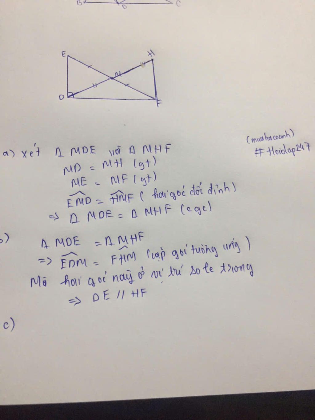 c) btreen cạnh DE lấy điểm A, trên cạnh HF lấy B sao cho DA=HB. cm A,M,H thẳng hàng