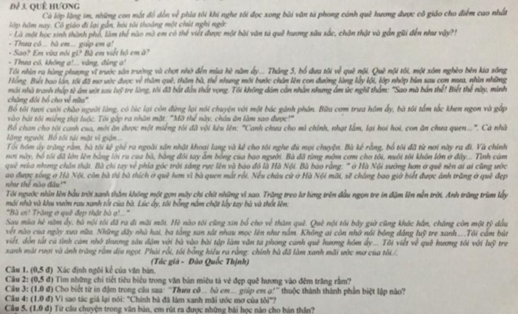 Câu 2: (0,5 đ) Tìm những chi tiết tiêu biểu trong văn bản miêu tả vẻ đẹp quê hương vào đêm trăng rằm?
