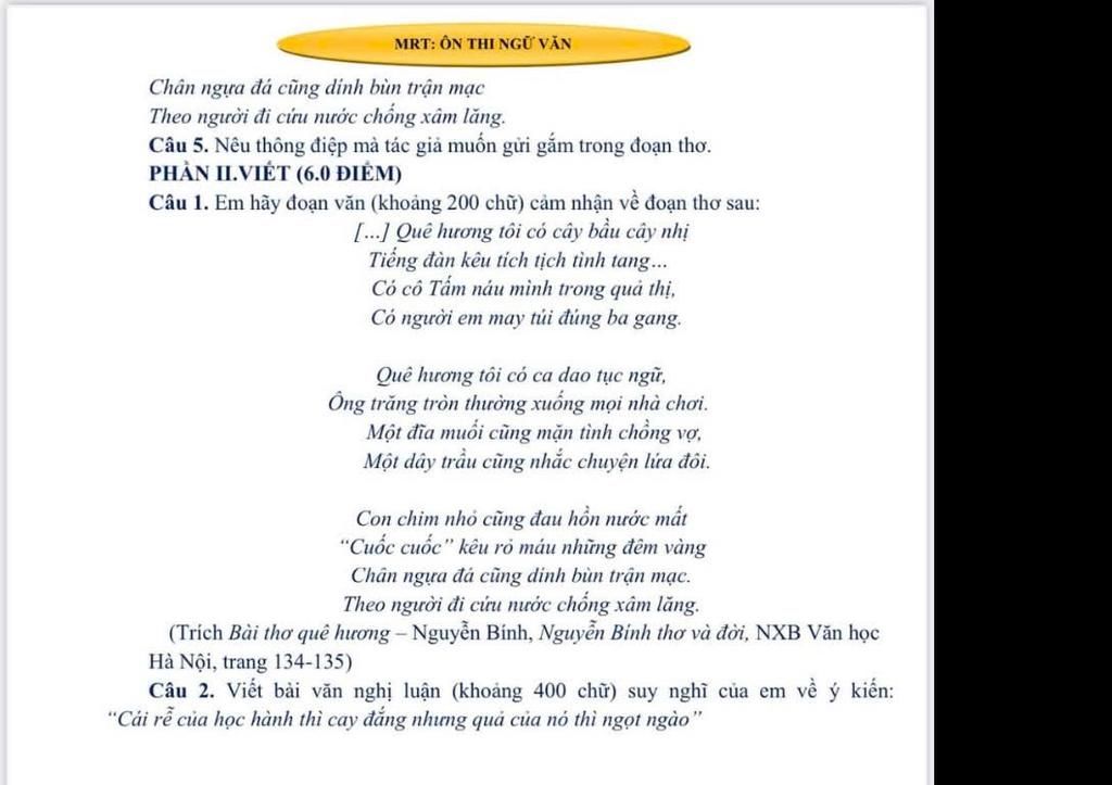 Câu 5: Thông điệp tác giả muốn gửi gắm trong đoạn thơ: