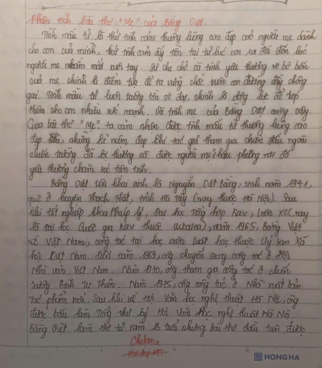 Viết bài văn phân tích bài thơ “Mẹ” của Bằng Việt ( k chép mạng ah , càng dài càng tốt ) mình cần gấp lắm rồi