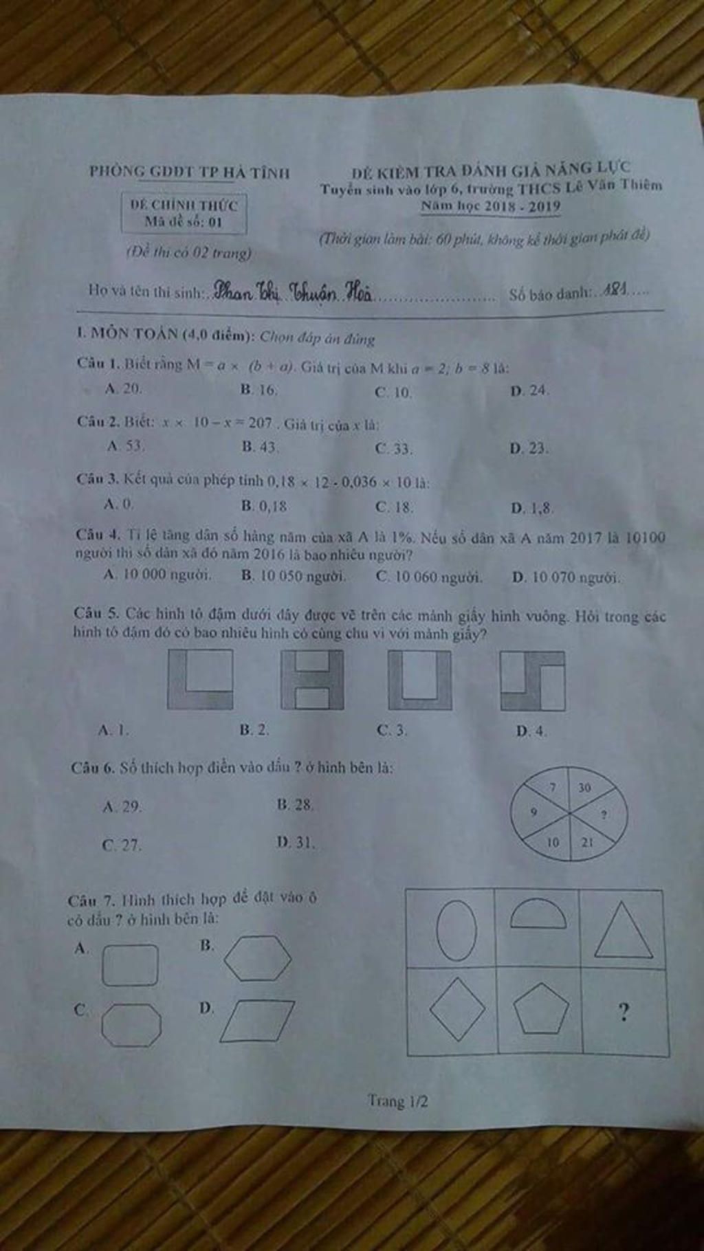 Ho và tên thi sinh: Phan bhị. Thuân Hoa.