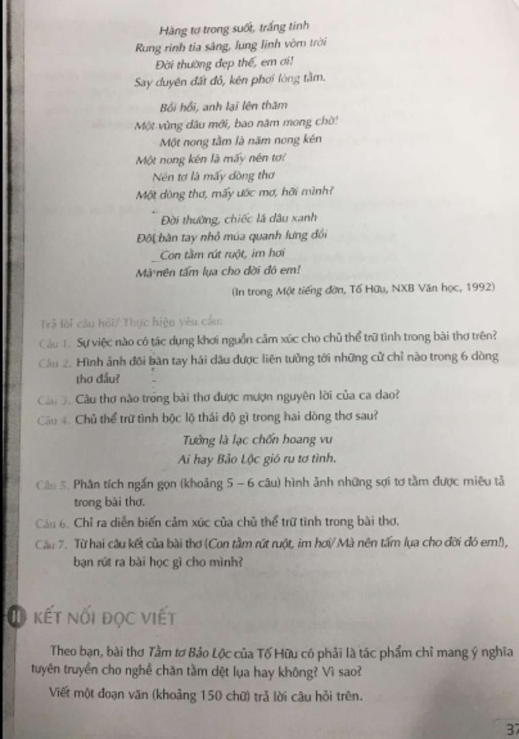 Diễn biến cảm xúc của chủ thể trữ tình trong bài thơ được thể hiện qua ba giai đoạn rõ rệt. Ban đầu, cảm xúc xuất phát từ sự ngỡ ngàng, say mê trước vẻ đẹp trong suốt, lung linh của những sợi tơ tằm – biểu tượng cho sự tinh khôi và thuần khiết. Tiếp theo, cảm xúc dâng trào khi chủ thể trữ tình nhận ra sự cần mẫn, hy sinh thầm lặng của con tằm và những người lao động để tạo nên những giá trị ý nghĩa. Cuối cùng, cảm xúc chuyển sang niềm tự hào, ngưỡng mộ khi thấu hiểu sâu sắc ý nghĩa của sự lao động bền bỉ và tinh thần cống hiến. Đây không chỉ là sự trân trọng vẻ đẹp của lao động mà còn là sự nhận thức về giá trị đích thực của cuộc sống.
