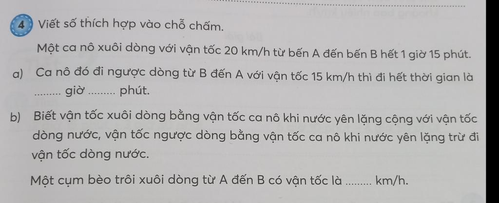 a)Thời gian ca nô đi ngược dòng từ B đến A là 1 giờ 40 phút