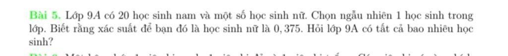 n(A) là số phần tử của A là số học sinh nữ ( n(A) , n($\Omega$) thuộc N*)