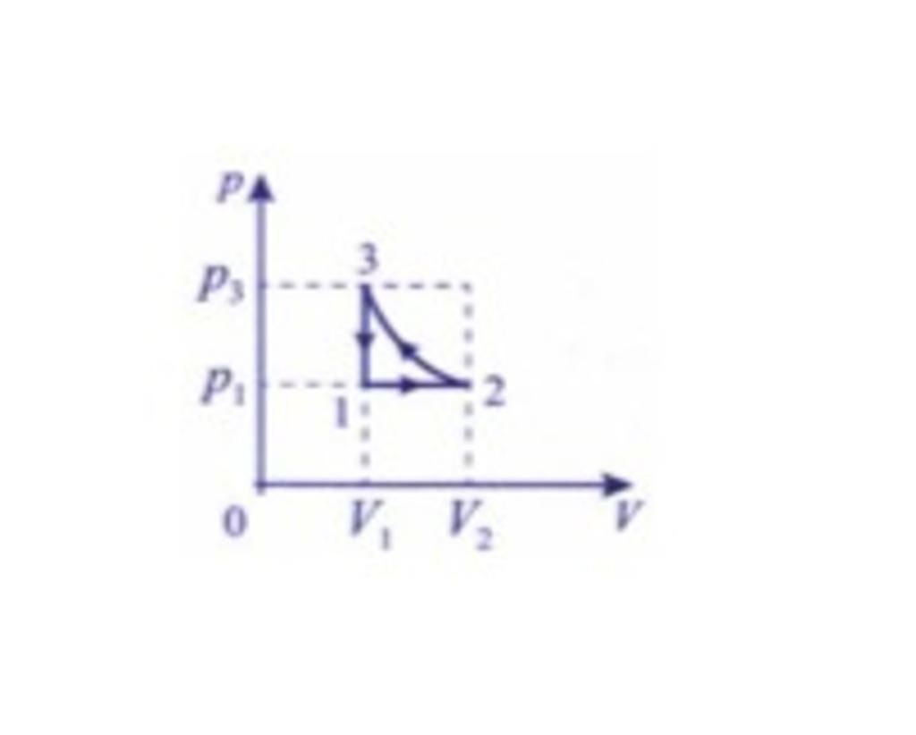 Từ `(3) to (1)` là quá trình đẳng tích, áp suất giảm từ `p_3` xuống `p_1`.