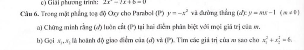 Mà `{(x_1 + x_2 = -m),(x_1.x_2 = -1):}`