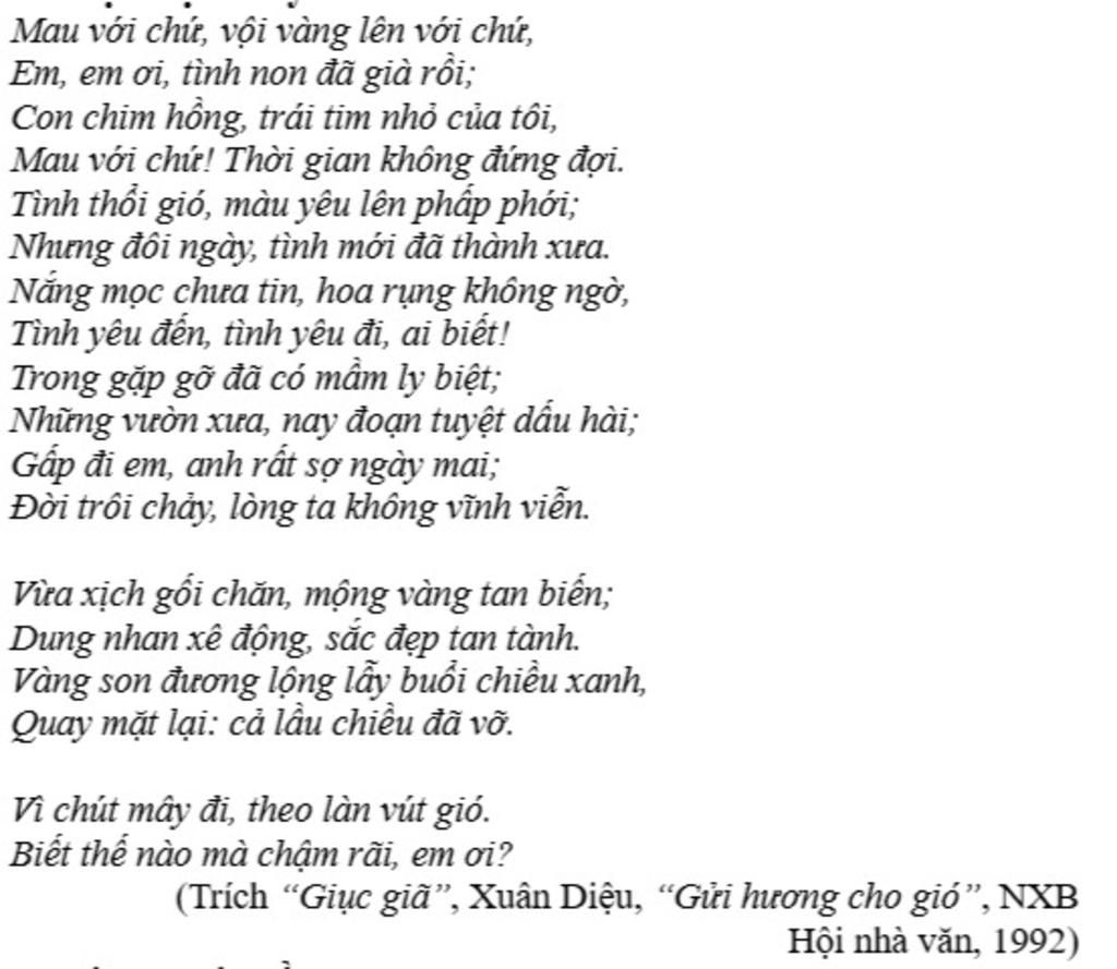 Câu 3. Chỉ ra những từ ngữ thể hiện sự giục giã của “anh” trong đoạn thơ trên.
