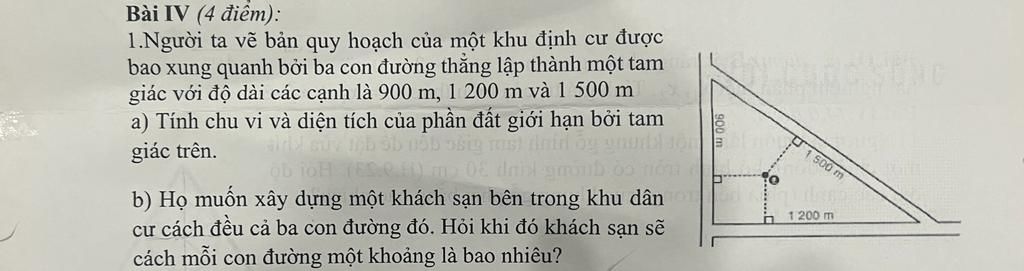 Suy ra r= $\dfrac{2⋅S_{ABC}}{2}$ =$\dfrac{2⋅540000}{3600}$=300 (m).