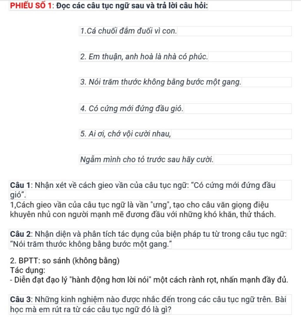 Nhận diện và phân tích tác dụng của biện pháp tu từ trong câu tục ngữ “Nói trăm thước không bằng bước một gang”.