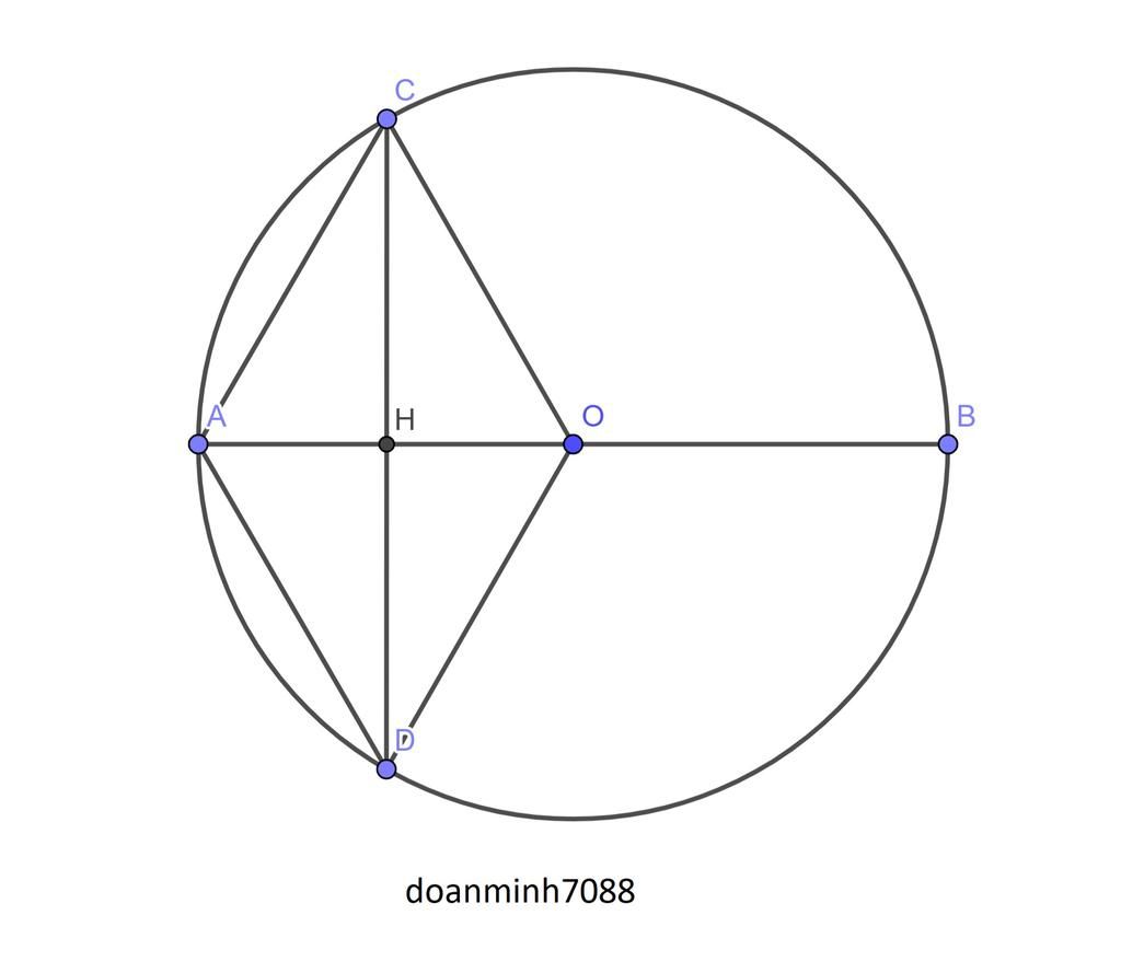 Cho đường trong tâm o lấy c,d là hai điểm thuộc đường tròn sao cho CD là đường trung trực của Oa tứ giác ocad là hình gì