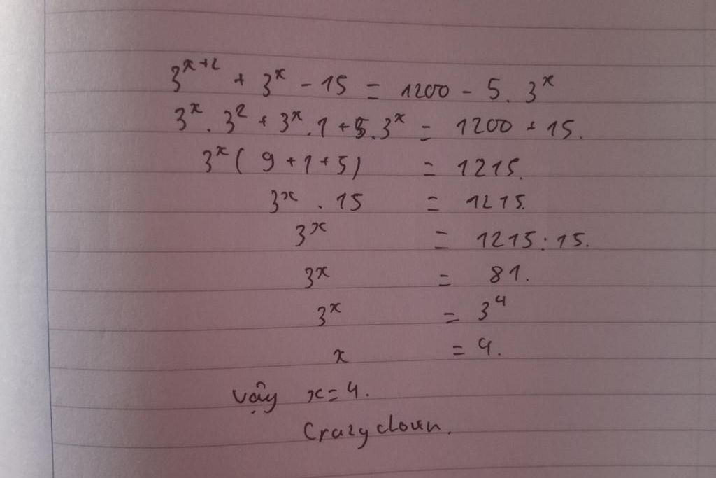 `3^x . 3^2 + 3^x . 1 + 5 xx 3^x = 1200 + 15`
