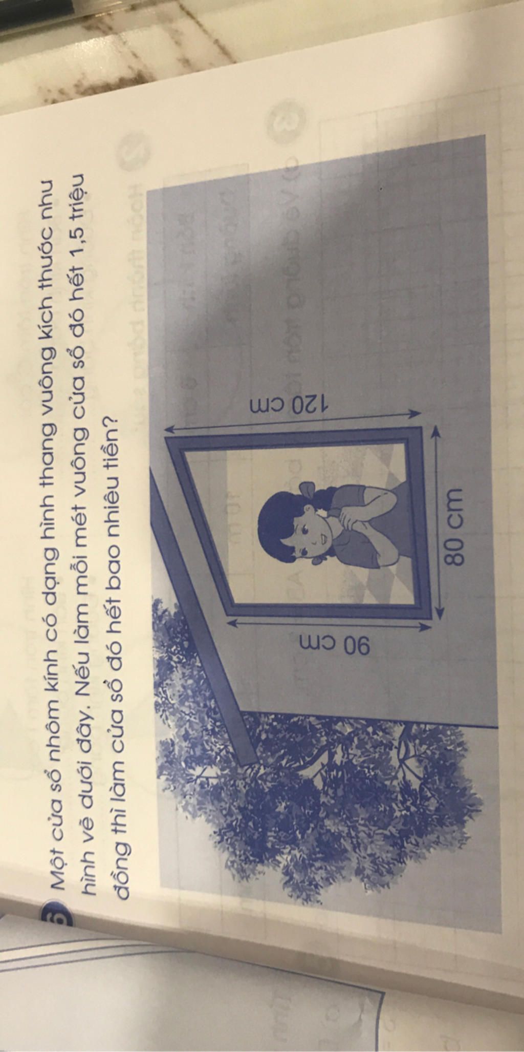 Nếu làm mỗi mét vuông cửa số đó hết `1,5` triệu đồng thì làm cửa sổ đó hết số tiền là:
