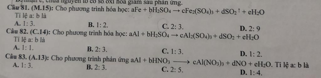 Câu 81: A. 1 : 3