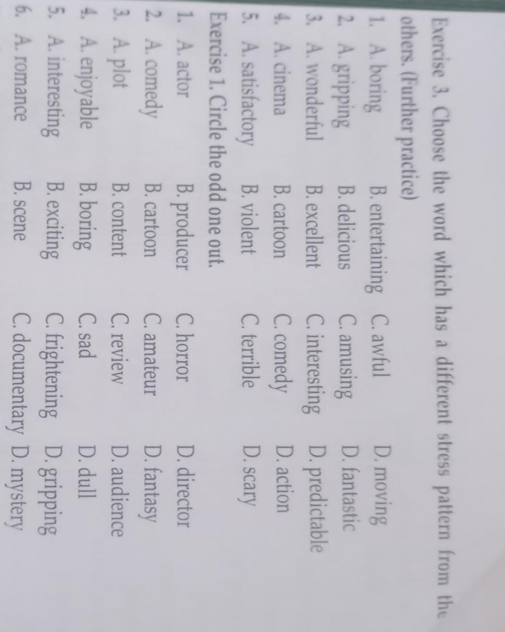 `3 . C` (Động từ còn lại danh từ/Các từ còn lại liên quan đến phim)