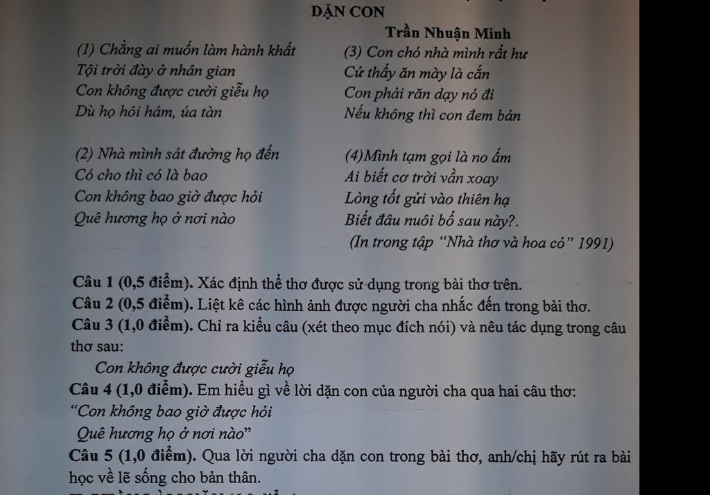 `-` Các hình ảnh được người cha nhắc đến trong bài thơ: hôi hám, úa tàn, con chó.