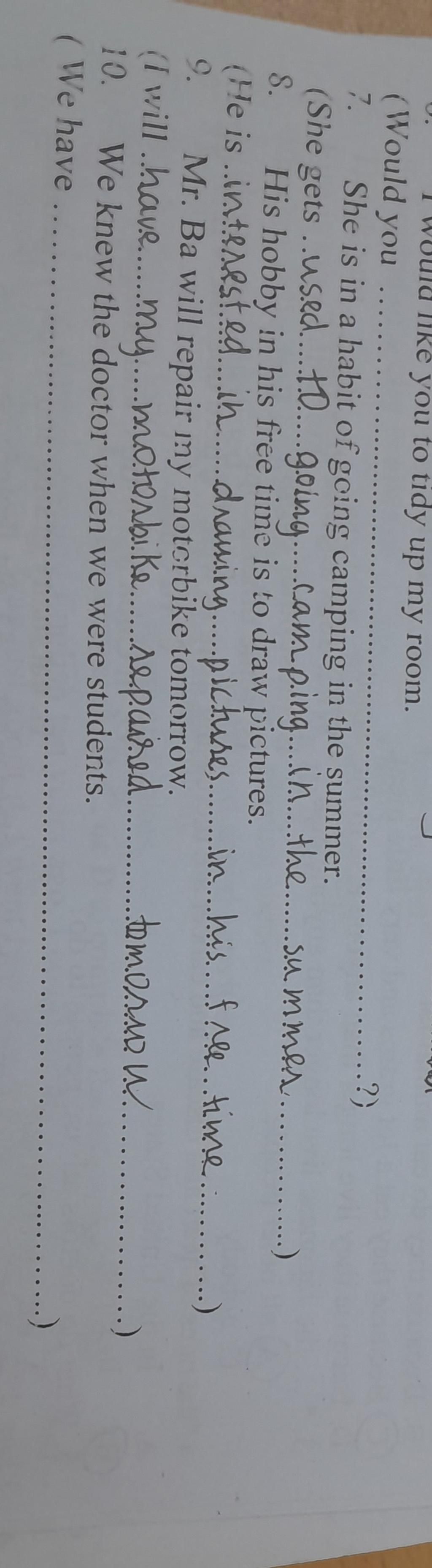 `9,` I will have my motorbike repaired by Mr. Ba tomorrow.